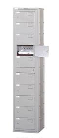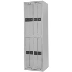 This 10 compartment unit has 1 large door for access to all 10 compartments. Great for package or bulky item storage. 3 locks options available: Key Lock, Combination Lock and Turn Knob. Size is 16-1/2″ wide x 16″ deep x 77-1/2″ high.