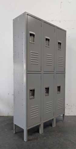 Our double lockers are a highly popular choice among our customers and for this reason, they rarely stick around our inventory for long. The main advantage of this style is you can save twice the floor space per compartment when compared to traditional, single tier compartments. Double tier columns are frequently utilized as school lockers because they make it easy for users to share a single locker without too much interference.