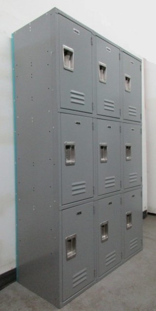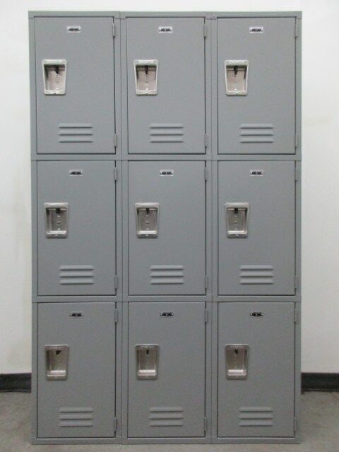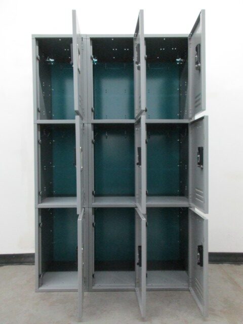 These 3-tier equipment lockers are actually constructed of new material from leftover parts in our warehouse consisting of Gray doors and bodies with Turquois backs. Each column contains 3 locker compartments that are 15″ wide x 18″ deep x 24″ high. These are the perfect size to store item’s in such as equipment, small tools, etc. They can also be used as employee or customer lockers. When used with a padlock or a built-in style locker lock, they provide a safe and secure storage solution.