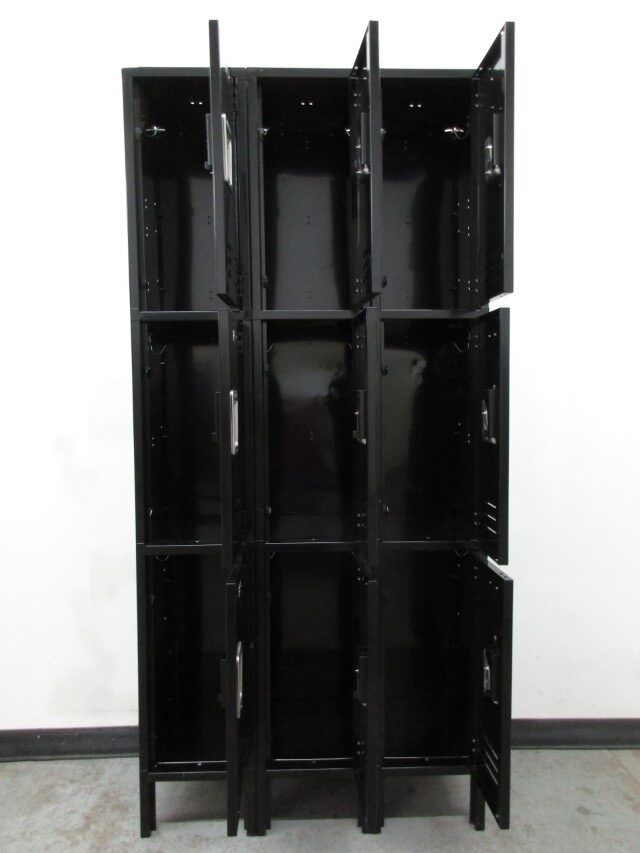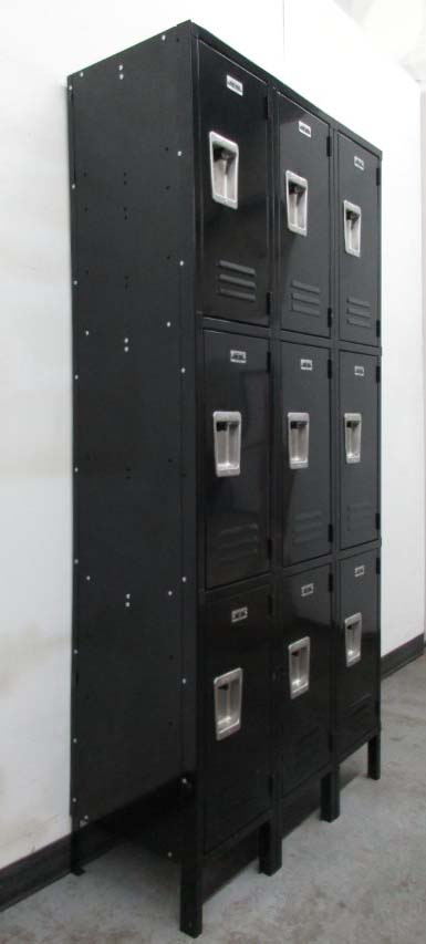 These used 3-tier lockers are 12″ wide x 15″ deep x 78″ high including the 6″ legs. They are in very good condition and fully functional. Each locker unit measures 12″ wide x 15″ deep x 24″ high and is padlock ready. Besides the savings you get by purchasing used lockers, the best part is that they ship assembled and are ready to use when they arrive.