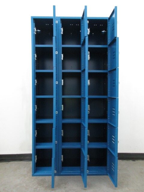 Purchase these nearly new 6-tier box lockers today before they are gone. They measure 12 inches wide by 15 inches deep by 12 inches high, with a total height of 72 inches. They are in very good, fully functioning condition and are padlock ready. Add charm and personality to any space with these lockers. They promises both functionality and security with a touch of fun., ideal for collectors or anyone looking to add a unique piece to their space. Call today for more information.