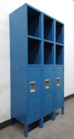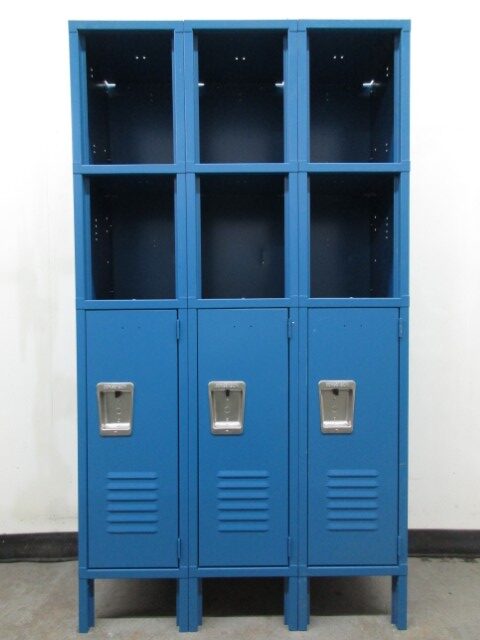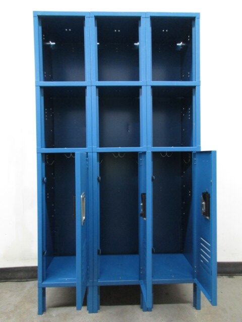 These are some of the coolest storage lockers we sell. They have 2 convenient open storage shelves that are quick and easy to access and a lockable storage compartment beneath them for a more secured storage option. Each column is 12” wide x 15” deep x 60” tall and a fun Blue color. These are new lockers that received some minor cosmetic damage during shipping and are now discounted so they are a real bargain. This type of locker is commonly used in offices, mudrooms, laundry rooms and bedrooms. Contact us today for a free no pressure quote.