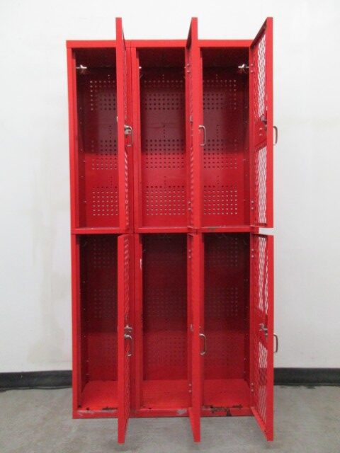Upgrade your facility with our heavy-duty, two-tier steel lockers—built to handle demanding daily use while maximizing storage in tight spaces. Each locker measures a compact 12″ wide x 12″ deep x 72″ tall, making them perfect for gyms, warehouses, schools, and industrial environments. The bold red finish adds a clean, professional look, while the perforated doors provide superior ventilation to keep contents fresh. These units show only slight cosmetic rust, offering exceptional durability at an outstanding value. Sturdy, secure, and space-efficient, these lockers are ready to provide years of reliable service