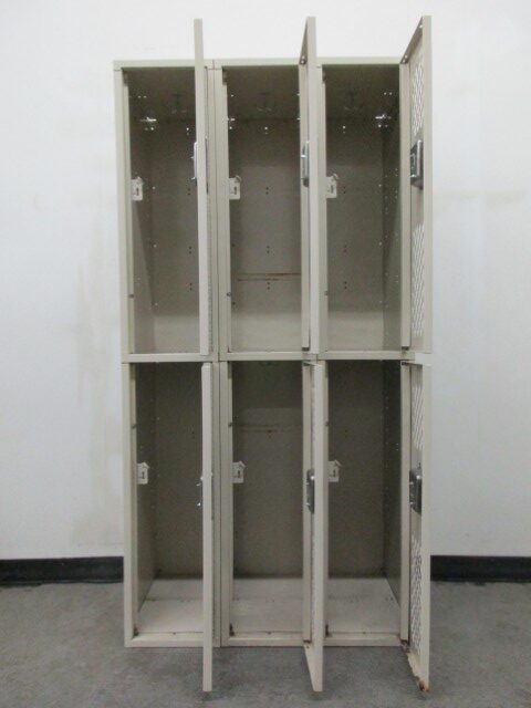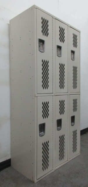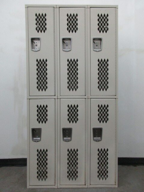 Improve your storage with these durable, double-tier heavy-duty lockers that are perfect for gyms, schools, warehouses, or garages. Each locker measures 12″ x 18″ x 36″/72″, offering plenty of space for storage of personal belongings or equipment. These fully functional lockers feature locking ventilated doors for added airflow. They do have some minor surface rust, but still have a lot of use in them. Don’t miss out on this great bargain—quality lockers at a fraction of the price of new!