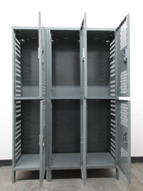 Upgrade your storage with these heavy-duty, 2-tier lockers, built to last! Measuring 18″ wide x 18″ deep x 72″ tall, these lockers offer durable steel construction with perforated doors and sides for superior airflow—perfect for gyms, warehouses, schools, and industrial settings. The ventilated design helps keep stored items fresh while maintaining security. Each locker features sturdy doors with reliable locking mechanisms, ensuring safe storage for personal belongings. Pre-owned but in excellent condition, these lockers provide high-quality storage at a fraction of the cost of new units. Don’t miss out—grab them today before they’re gone!