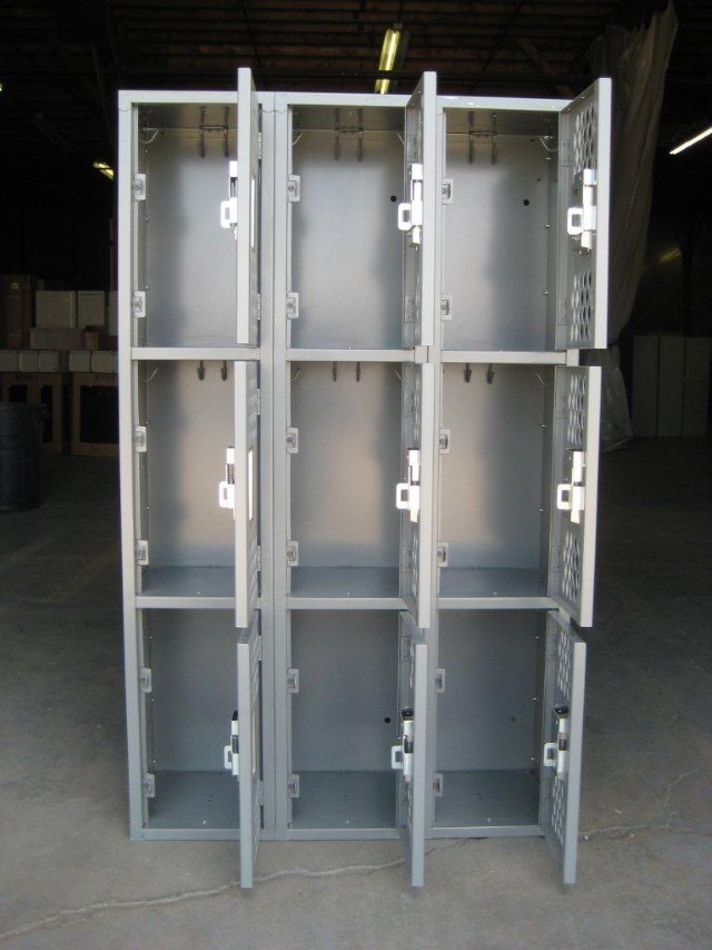 Heavy Duty All Welded Lockers for Sale! These lockers are made for the toughest environments. The doors have extra ventilation holes in them, they are perfect for gyms and locker rooms. Users can use their own pad-lock to lock these or we can add built-in style key or combination locks to these as well.