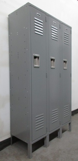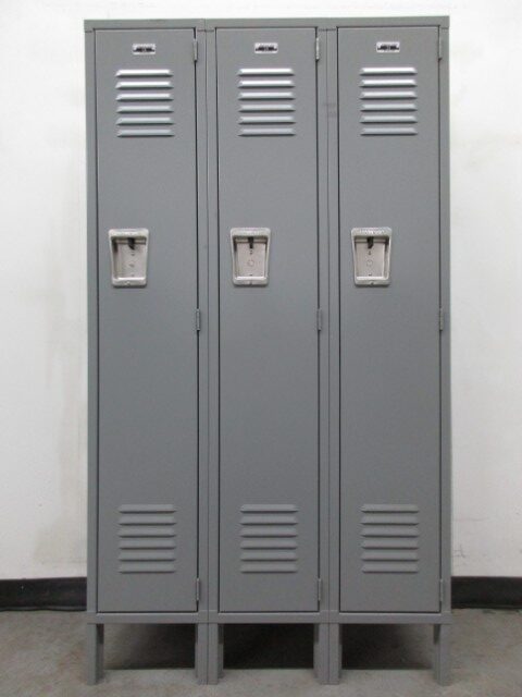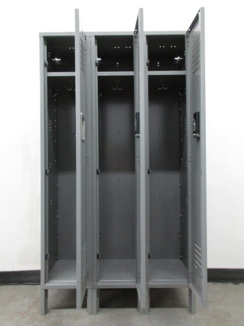 Take advantage of the savings available on these nearly new single tier hallway lockers. They have some minor paint issues but function and look just about as well as new lockers do.. They measure 12″ wide x 15″ deep x 66″ high including the 6″ legs and are padlock ready. Often used in school hallways, locker rooms, shops, and employee lounges. These lockers are sure to sell quickly so take advantage of them while you can.