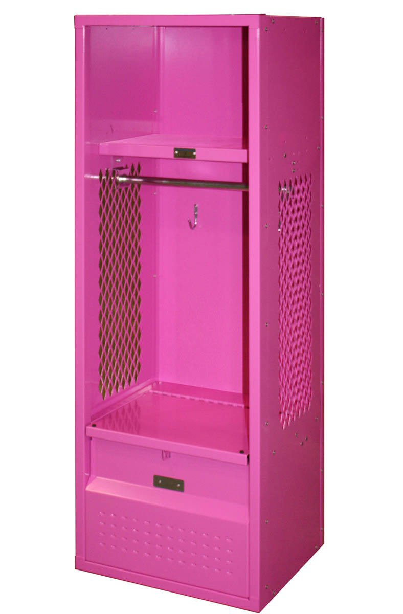 New kid’s stadium lockers available that are just like those that are full size but on a smaller scale; designed especially with kids in mind. They have 16 gauge diamond perforated sides and 16 gauge solid steel top, bottom and shelf.