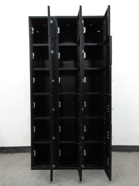 These lockers are ideal for storing small items such as books, school supplies, jackets, keys, etc. Each locker compartment is 12″ wide x 18″ deep x 12″ high. The frames are 78″ high overall and contain 6 locker compartments each. Popular among schools, businesses, and even home use. Each locker can be locked with a built-in key or combination lock or a removeable padlock (not included) which we also sell. Call today for availability and pricing.