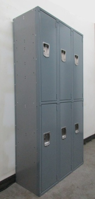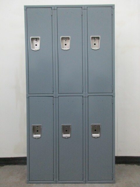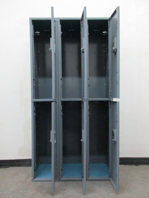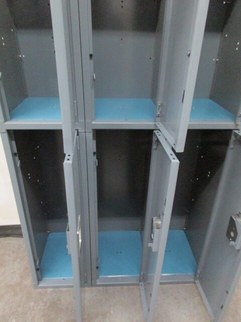 Are you looking for a way to organize and securely store your belongings? Consider these used 2-tier lockers. Each locker measures 12” wide x 15” deep x 36″ high in columns that are 72″ high overall and are padlock ready. These lockers have gray doors and bodies with blue shelves. These used lockers function as well as new lockers but cost much less and are commonly used in gyms, schools and break rooms. Call today for pricing and availability.