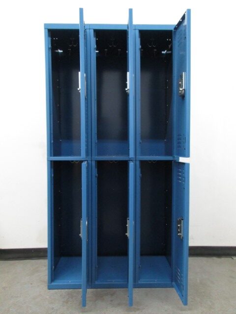 These Two tier lockers have been refurbished and are in good working order. Each 72″ column contains 2 lockers that are 12″ wide x 18″ deep x 36″ high. Each locker has clothing hooks for storage options and is padlock ready. These lockers can be used just about anywhere but are normally used in schools, warehouses, office and homes.