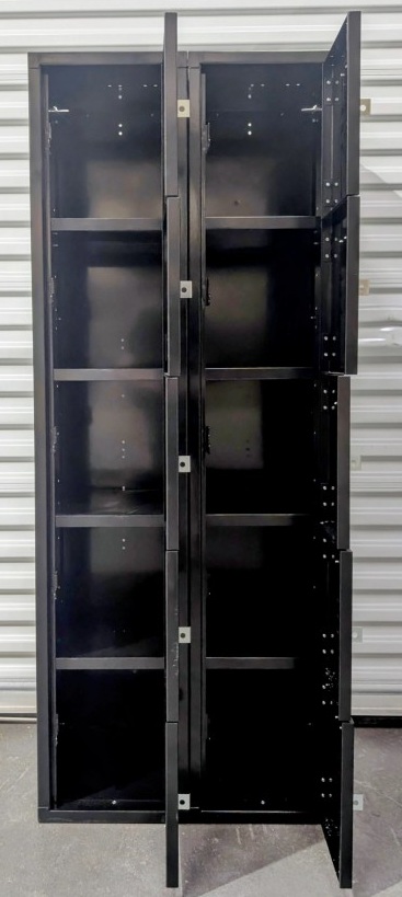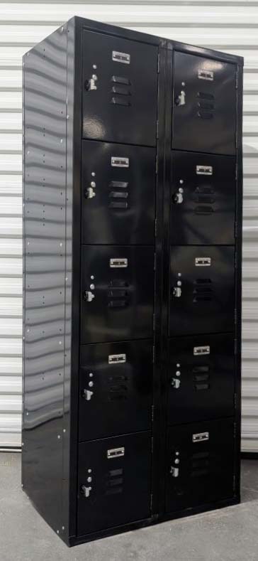 These used 5-Tier box style lockers are ideal for storing smaller items without taking up a lot of space. Each compartment is 12″ wide x 15″ deep x 12″ high and padlock ready. The columns are 60″ high overall. This type of locker is commonly used in gyms, schools, workplaces for employees and customers, and even home use to organize clothes, toys, crafts, tools, cleaning supplies, etc.