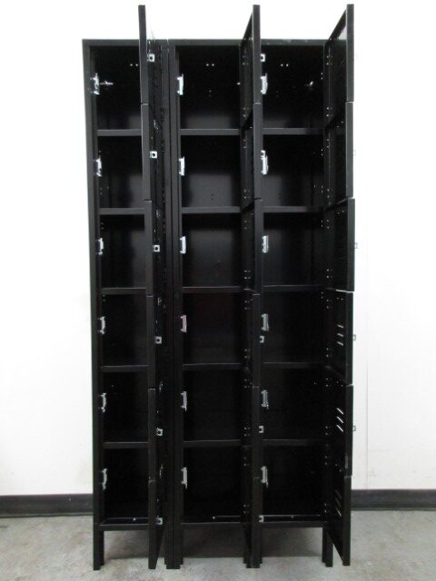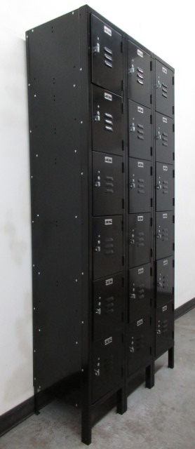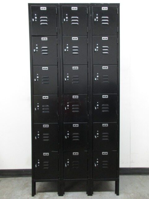 These lockers are ideal for storing small items such as books, school supplies, jackets, keys, etc. Each locker compartment is 12″ wide x 15″ deep x 12″ high. The frames are 78″ high overall and contain 6 locker compartments each. Popular among schools, businesses, and even home use. Each locker can be locked with a built-in key or combination lock or a removeable padlock (not included) which we also sell. Call today for availability and pricing.
