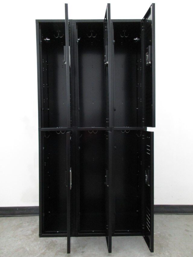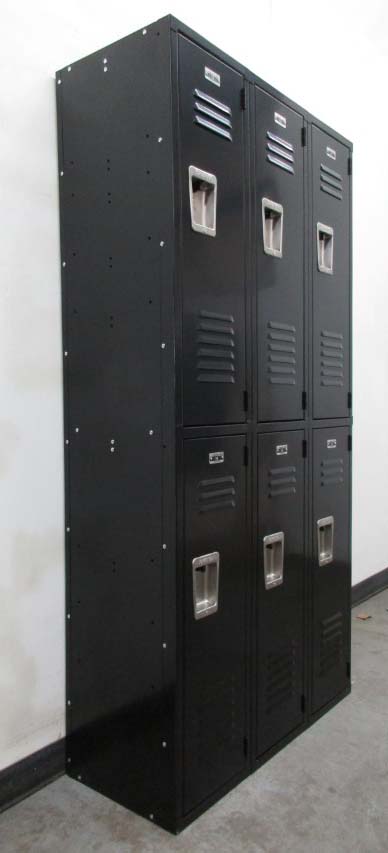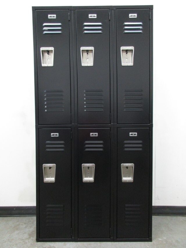 These used 2-tier lockers are 12″ wide x 15″ deep x 72″ high and in very good condition. They are typically used in schools as student lockers or break rooms as employee lockers. Each locker comes equipped with clothing hooks and a padlock hasp. Call today for pricing and shipping options.