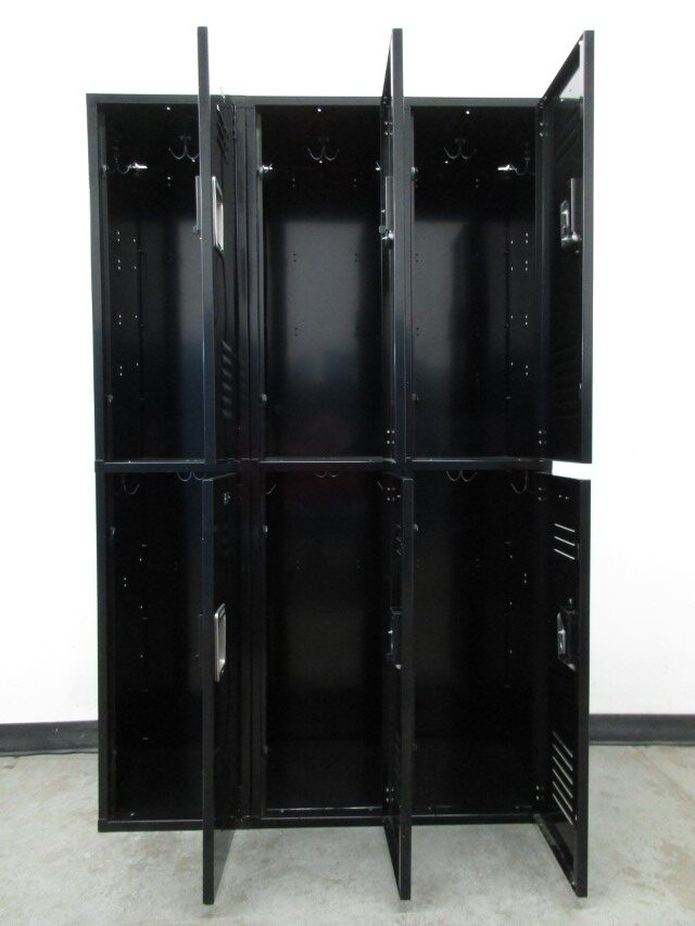 These used 2-tier metal lockers are perfect for schools, gyms or locker rooms. Each locker is 15″ wide x 18″ deep x 36″ high in columns that are 72″ high. These are larger than standard lockers so they will hold more items. Clothing, backpacks, gym bags, pursues, etc. should have no problems fitting in these lockers. They are equipped with interior hooks to maximize storage space. When used with a lock, they provide secure, organized storage for students, employees and patrons. Contact us today for pricing and shipping rates.