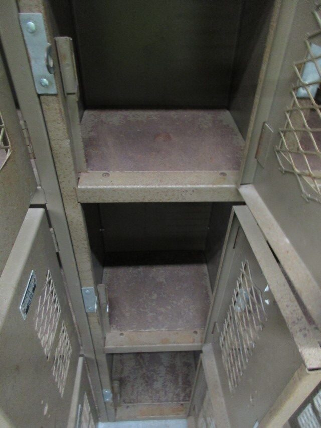 These affordable 4-tier lockers are older and well used but still completely functional. Each locker compartment is 12″ wide x 12″ deep x 20″ high and has a lockable lift handle in columns that are 80″ high overall including the sloped tops. The doors have extra ventilation which will help keep the locker contents dry and odor free. They may not be the prettiest lockers but, they are functional and for the cost a real bargain. Request a quote for pricing and shipping options.