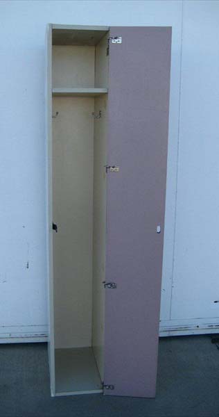 We just received 20 of these used 1-tier wood lockers that are 11.5” wide x 19.5” deep x 72” high in good working order and good overall condition. These wood lockers are locked with a padlock and include a shelf and two hooks per compartment to hang clothing or other items. The lockers have been drastically discounted to $75.00 each.