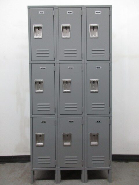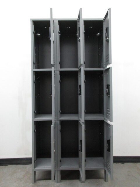 Three Tier Lockers are very popular to use in employee break rooms. They don’t take up a lot of room, yet still provide plenty of space for employees to store their valuable belongings while at work. Each compartment measures 12″ wide x 18″ deep x 24″ high and is padlock ready. These lockers are brand new but did receive some scratches during shipping.
