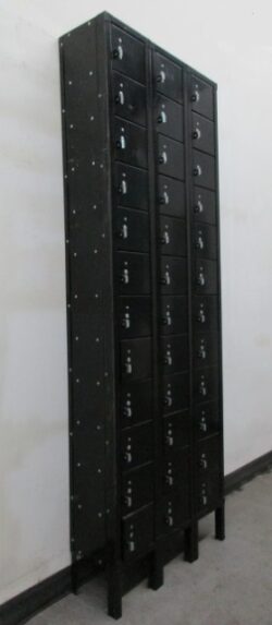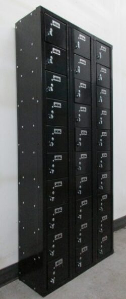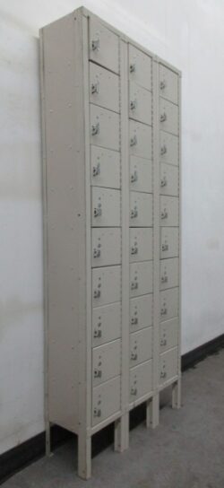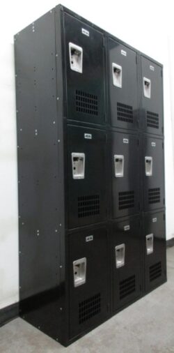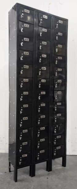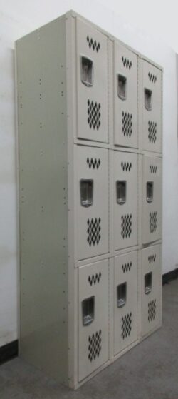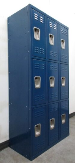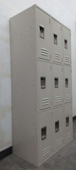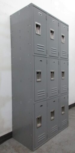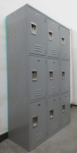 Our used locker selection is broken down based on the number of doors, these are often referred to as “tiers” within the locker industry; the number of tiers is equivalent to the number of compartments within each vertical locker column. Tier options are available in single, double, triple to box tier styles which cover everything from individual use to high density storage systems for serving multiple users at once. If you have tight space limitations, we can work with those as well by helping you find the best style to accommodate every inch of your available space. Although our lockers come to us in pre-bolted or riveted into sets, we are always willing to reconfigure them if possible. Whether just a single column or a set of six is needed, we will do our best to customize your personal storage needs.