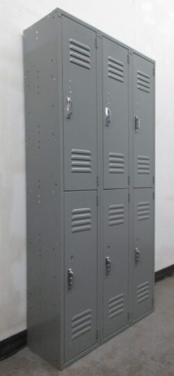 Our double lockers are a highly popular choice among our customers and for this reason, they rarely stick around our inventory for long. The main advantage of this style is you can save twice the floor space per compartment when compared to traditional, single tier compartments. Double tier columns are frequently utilized as school lockers because they make it easy for users to share a single locker without too much interference.