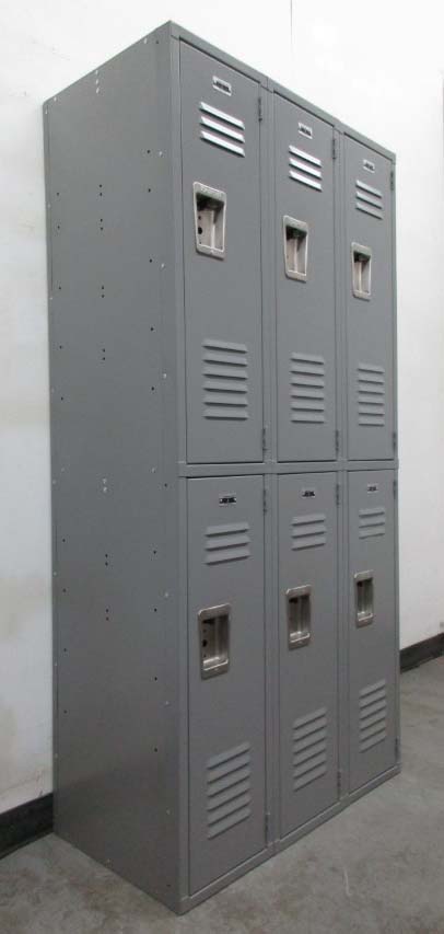 These used 2-tier storage lockers are bigger than most. They measure 12″ wide x 18″ deep x 72″ high overall. Each compartment is 36″ high and pad lock ready. These are very good, solid metal storage lockers that will provide safe storage for any valuable item that will fit in them. You can used these at school, the office, or even at home.