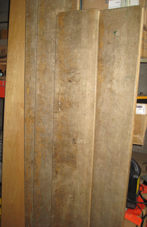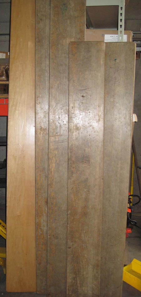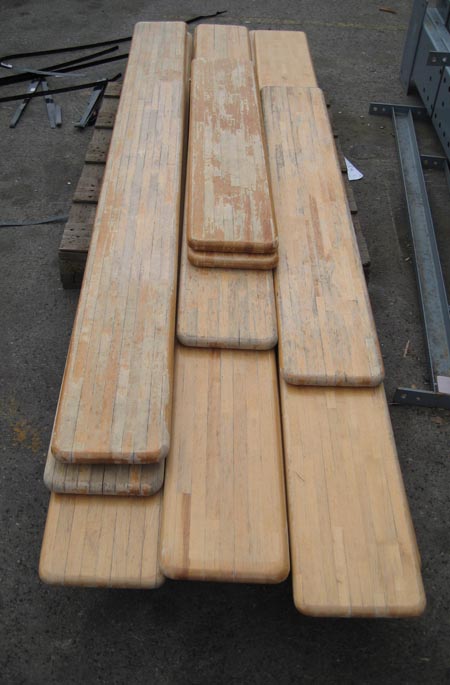 Used Locker Bench Tops for sale. These are maple hardwood tops and aren’t the prettiest, but they are still structurally sound and ready to provide you with bench seating a cheap price. We have: