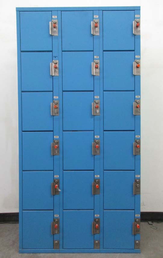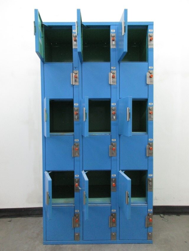 These used 6-Tier coin operated lockers are 12″ wide x 18″ deep x 72″ high and are in good working condition, They are set two 2 quarters per use to generate revenue for you. Coin operated lockers are commonly used by shopping malls, ski resorts, schools, government agencies, zoos, museums, bowling alleys, amusement parks and any location requiring storage lockers for customer use.